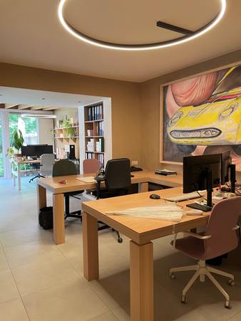 Bij de renovatie van ons eigen kantoor kozen we resoluut voor een duurzame en aanpak. De bestaande ruimtes kregen een doordachte herinrichting, met bijzondere aandacht voor het gebruik van natuurlijke materialen, tactiliteit en daglicht.