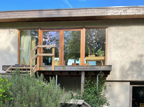 De nieuwbouw van een compacte eengezinswoning bestaande uit een gelijkvloers volume in natuurlijke materialen (stro, leem, kalk, houten ramen en dakrand) op een betonnen sokkel. Het leefgedeelte (koken, eten, ontspannen en slapen) vindt plaats in het gelijkvloers volume. De kelder functioneert enerzijds als opslagruimte maar daarnaast dient het ook als therapieruimte en repetitieruimte voor de muzikale bewoners.